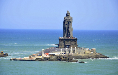 The gigantic statue of Tamil Poet Thiruvalluvar, standing atop an island few metres into the sea is one of the major tourist attractions of Kanyakaumari. Standing tall at 133 feet, the statue of Thiruvalluvar was opened to the public in 2000. The statue stands on a three-tier pedestal, known as the Atharapeedam which is further surrounded by a 38 feet Alankara Peedam. 10 elephants made of stone mantle the Alankara Peedam symbolising the ten directions - eight for earth, one for sky and another for hell.